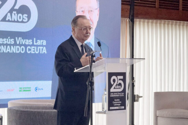 El presidente de la Ciudad, Juan Vivas, ha intervenido este martes en un acto organizado conjuntamente con motivo de sus 25 años al frente del Gobierno de Ceuta por los medios de comunicación El Faro, El Pueblo, Ceuta TV, Ceuta Actualidad y Ceuta al Día.