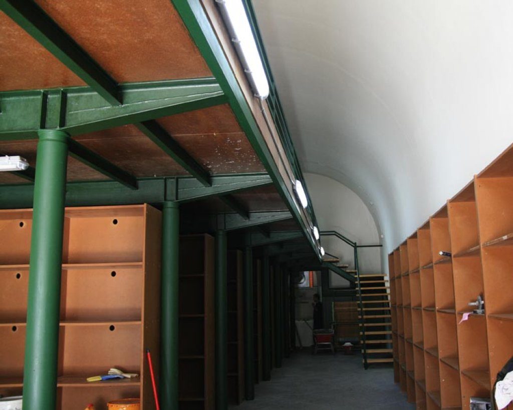 Tras dos meses de trabajos, la bóveda número cuatro de las Murallas Reales, está ya casi lista para volver a cumplir su cometido: acoger las piezas de los museos que el espacio impide mostrarlas al público.
