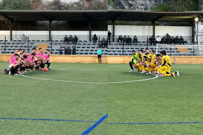 Antes de comenzar el encuentro del Ceuta 6 de Junio ante La Street FC, ambos planteles se arrodillaron en el círculo del centro del campo como protesta por lo sufrido sobre el terreno de juego ante el Sporting en la jornada previa.