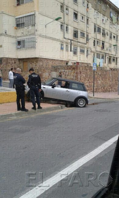 El conductor del vehículo que aparece en la imagen acabó abandonándolo y dándose a la fuga segundos después de sufrir un accidente en la barriada Juan Carlos I.