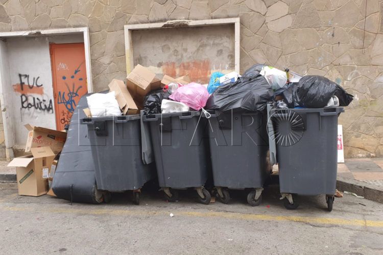 Las imágenes que ilustran este artículo reflejan claramente que los contenedores están repletos de basura, que la basura impide el paso de peatones por la acera; pero también, que el número de contenedores es insuficiente para recoger los restos de vecinos y comercios. Son dos imágenes de distintos días, tomadas a las ocho de la tarde cuando, por tanto, todavía hay muchos vecinos y vecinas que no han arrojado los restos -nunca mejor dicho-, porque al estar repletos los contenedores tiran las bolsas o las depositan en el suelo, acera o la carretera de acceso.