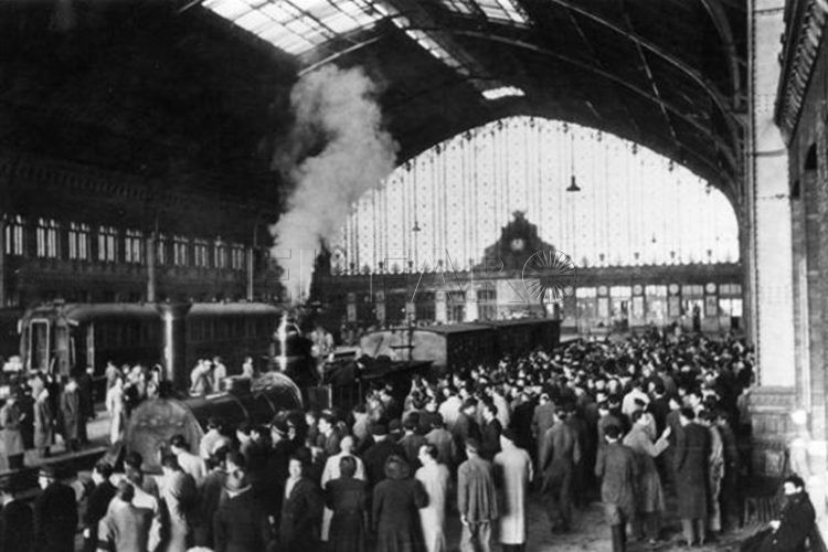 Tomamos el tren con la noche en ciernes, los últimos viajeros se apresuran a subir, el jefe de estación alza la bandera roja, se oye un silbido, y principian a rodar los vagones con algunos pasajeros diciendo su último adiós desde las ventanillas. El tren acelera su marcha y al poco las últimas casas de Madrid se emborronan en la obscuridad. Madrid ya es sólo una mancha en el paisaje... Dejo mis notas, la noche será larga en el traqueteo del roce de las ruedas con las vías. Todo se silencia, afuera una luna amarilla persigue al tren por los campos...