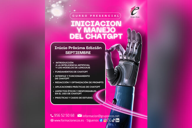 La Academia Ecos, uno de los centros de formación más reconocidos de la ciudad, ha anunciado la apertura de inscripciones para su nuevo curso “Iniciación y Manejo de ChatGPT”, que tendrá lugar durante el mes de septiembre en sus instalaciones del Poblado Marinero. Esta iniciativa supone un hito en la oferta educativa local, al ser la primera propuesta formativa en Ceuta dedicada a la inteligencia artificial generativa y, en concreto, al uso de ChatGPT.