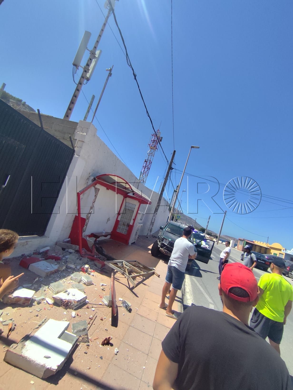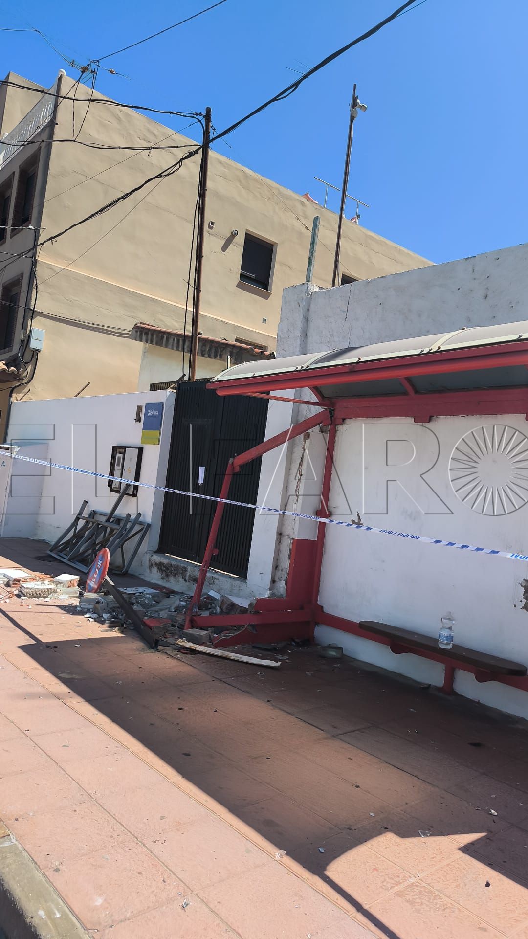 Con la marquesina completamente destrozada, los vecinos de la barriada se quedan ahora sin la infraestructura de protección necesaria mientras esperan el bus.