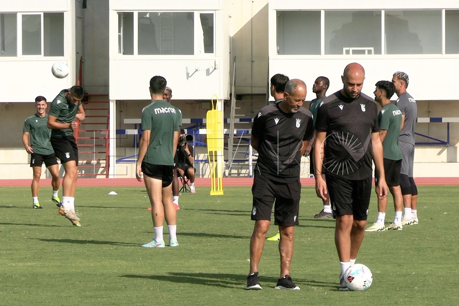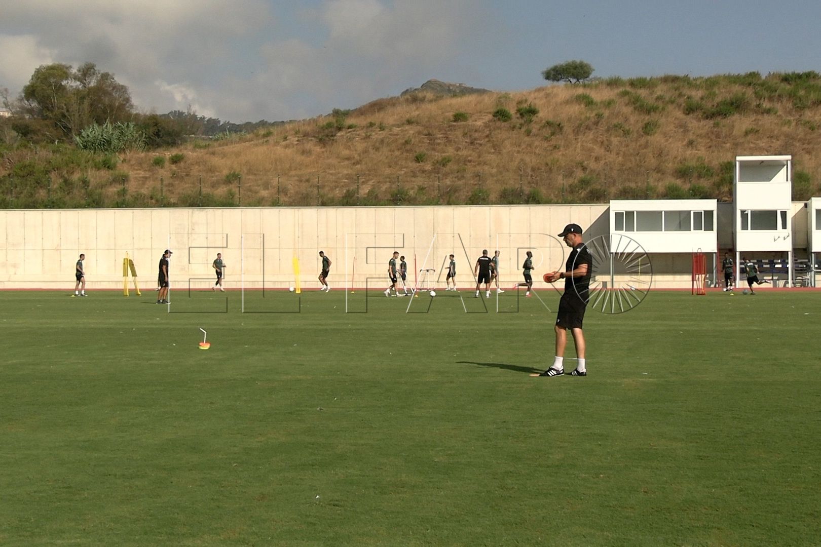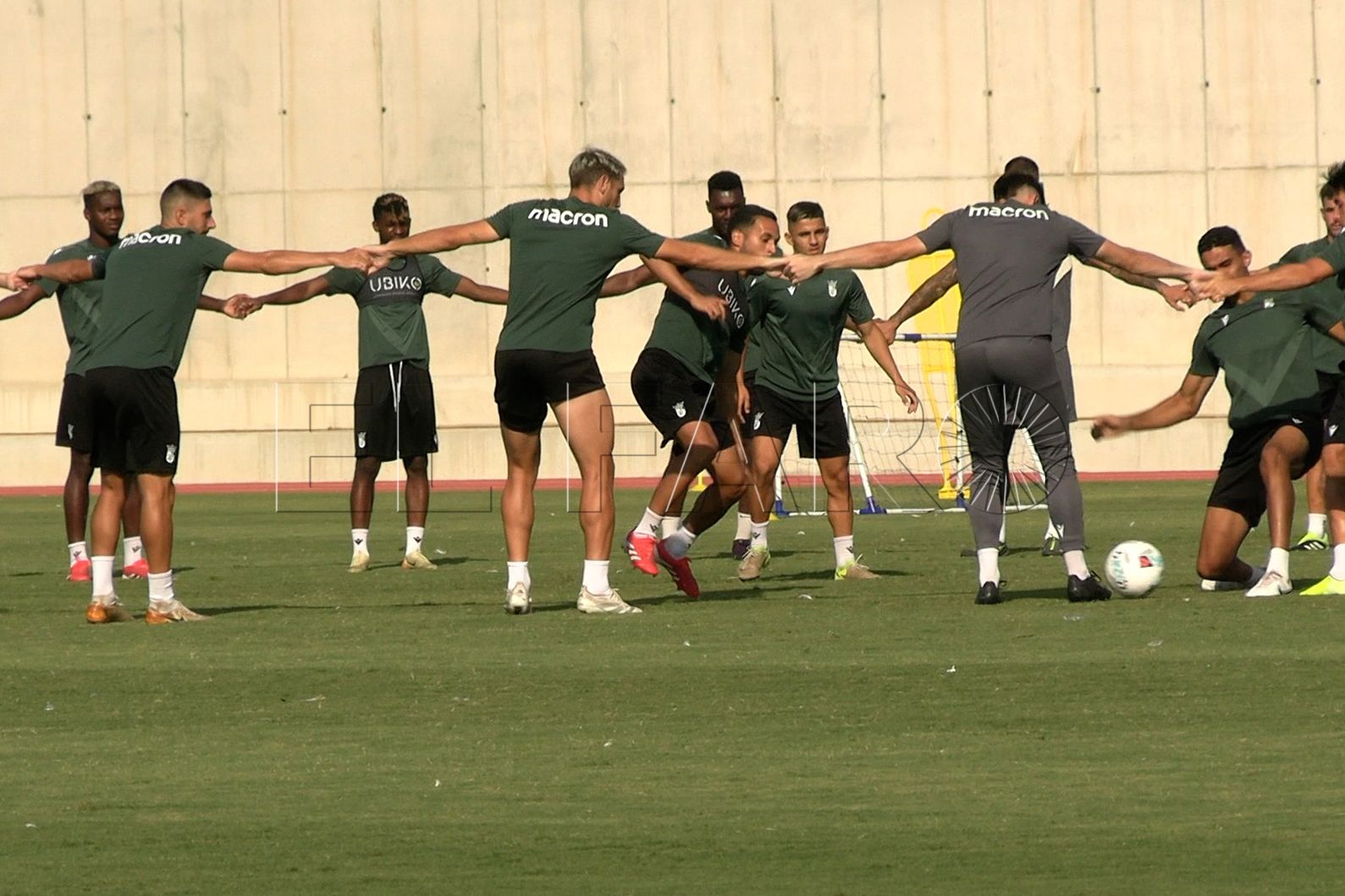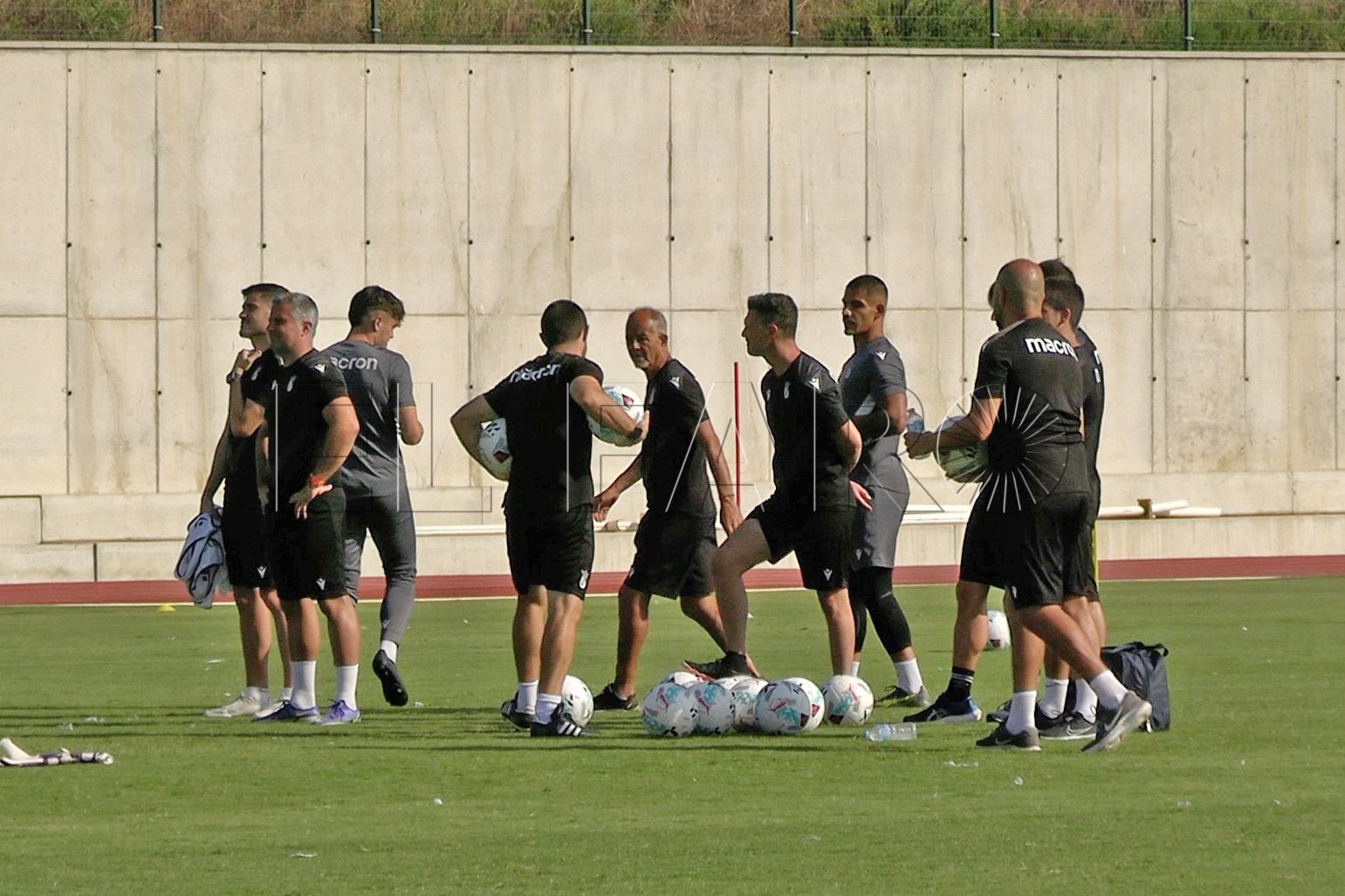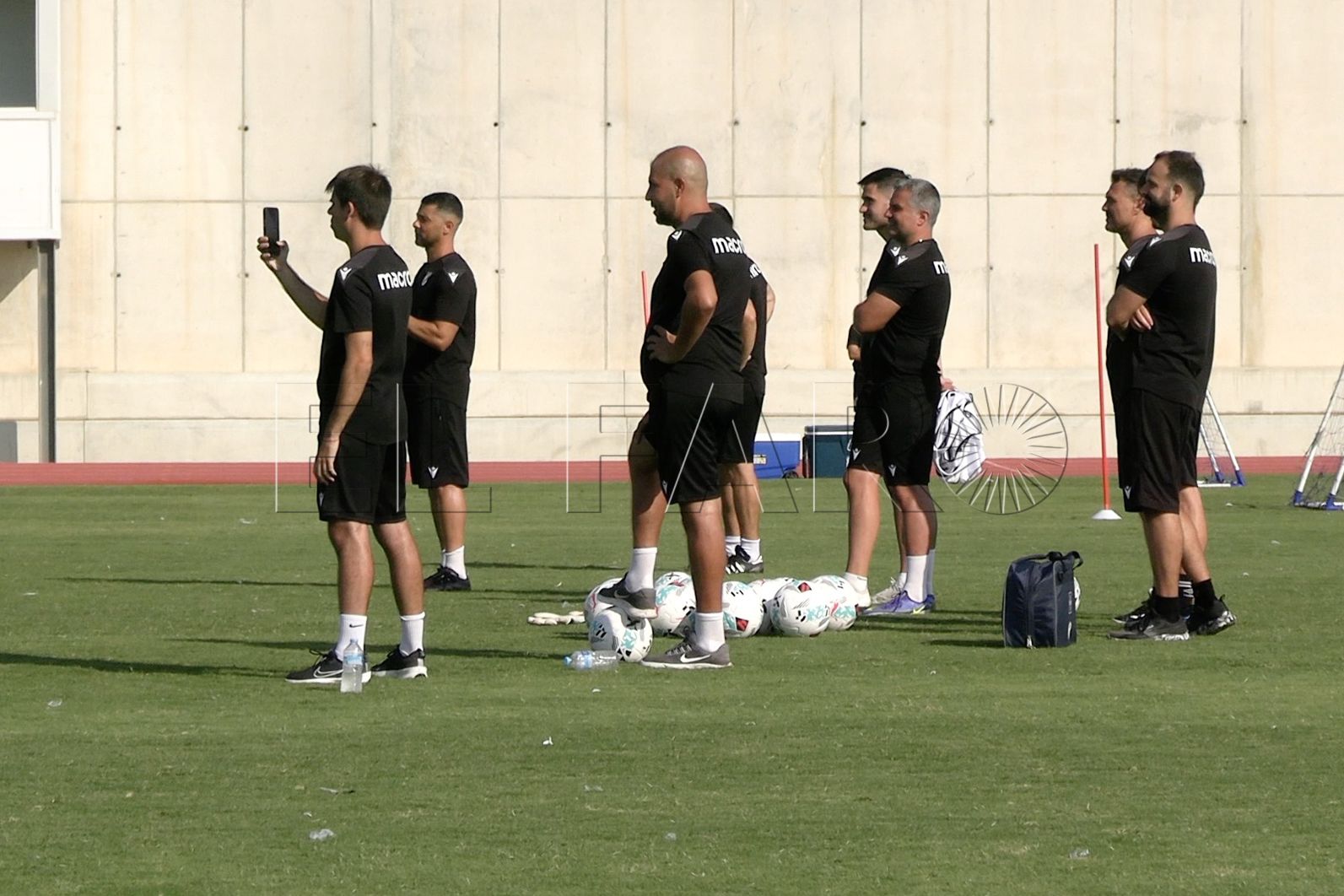 El técnico de Gerena, recientemente renovado hasta 2027, observaba atentamente a sus pupilos como entrenaban a fondo en la última sesión antes de viajar a Valladolid.