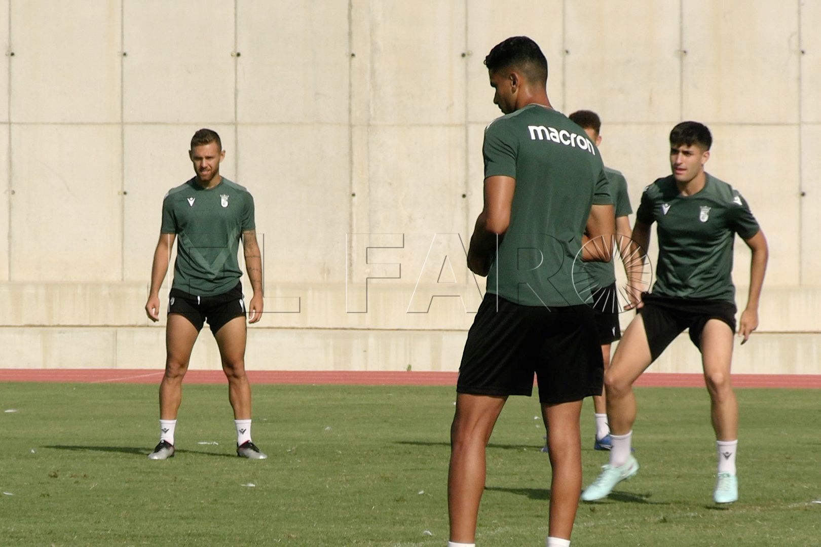 Esta mañana en las pistas de atletismo, el grupo salió a hacer los ejercicios pertinentes, los últimos, antes de su viaje a Valladolid. Con caras nuevas en la plantilla y la ilusión intacta, los futbolistas saltaron al césped de las pistas de atletismo para realizar la sesión matinal a las órdenes de José Juan Romero y su cuerpo técnico.