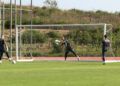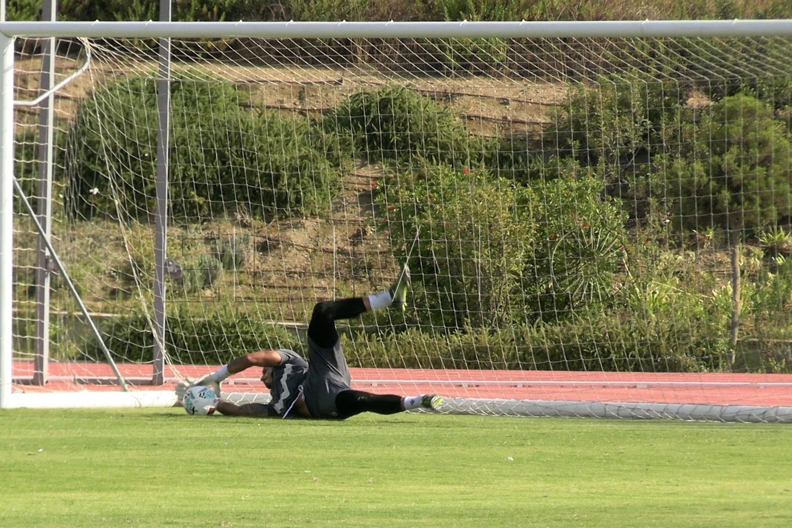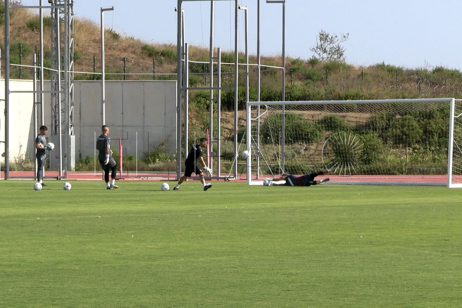 Se podía comprobar la intensidad y las ganas que imprimían los futbolistas en cada acción. Los porteros también hicieron sus ejercicios correspondientes en la portería con el entrenador de porteros.
