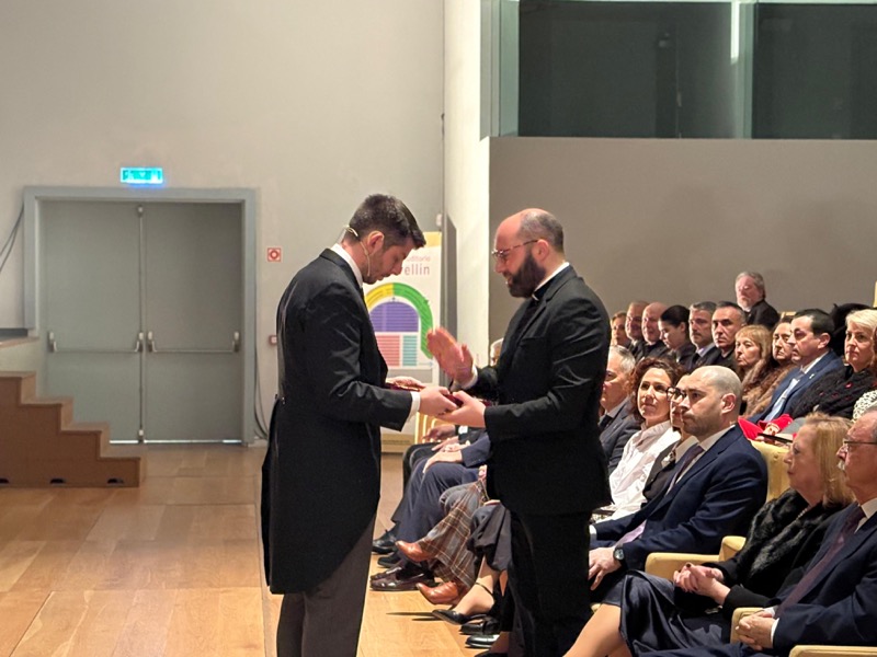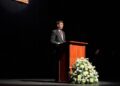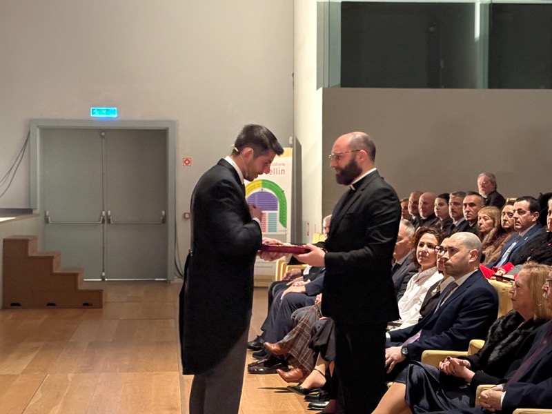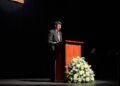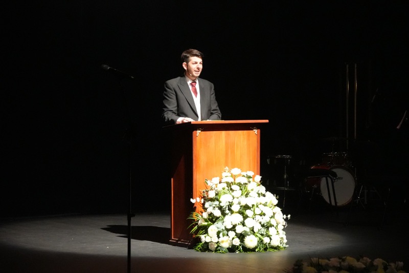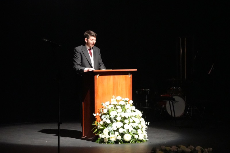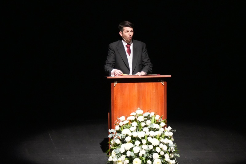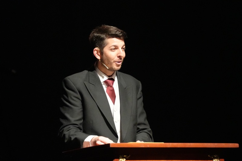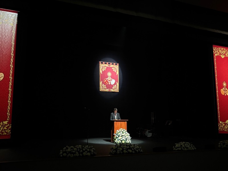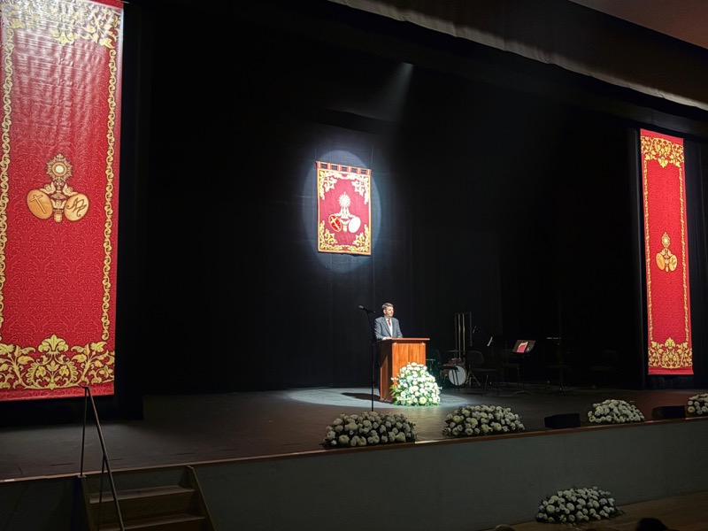 Tras estas emotivas palabras y después de recibir la bendición del vicario general de Ceuta, Adán del Campo ha subido al escenario para pregonar la Semana Santa de Ceuta 2026.