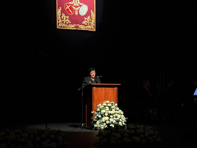 Isabel María Gutiérrez Sánchez, pregonera de la Semana Santa de Ceuta 2025, quien está vinculada estrechamente a la hermandad del Valle, ha sido la encargada de presentar al pregonero “de nuestra semana mayor”.