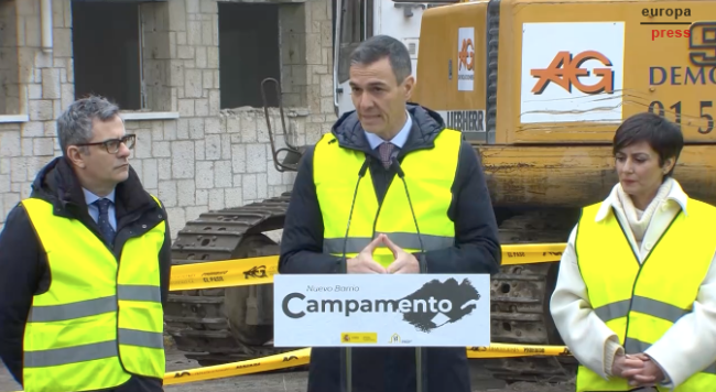 "Es sencillo: a quienes garantizan vivienda digna les apoyaremos y a quienes especulan con ello les pondremos freno", ha avanzado el jefe del Ejecutivo en su visita este lunes a los trabajos de demolición de los primeros edificios del acuartelamiento de Campamento, en Madrid, para la construcción de 10.700 viviendas asequibles.