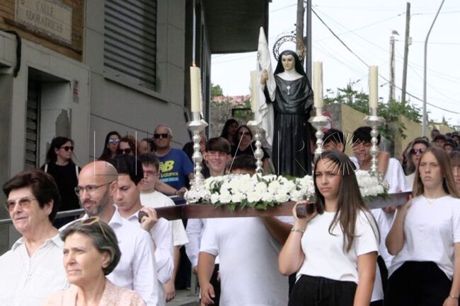 Por su parte, la imagen de la virgen, Santa María Micaela, encabezaba el centro de la procesión acompañada por el resto de la comunidad educativa. Cuatro alumnos, que han ido cambiándose, portaban sobre sus hombros a la Santa.