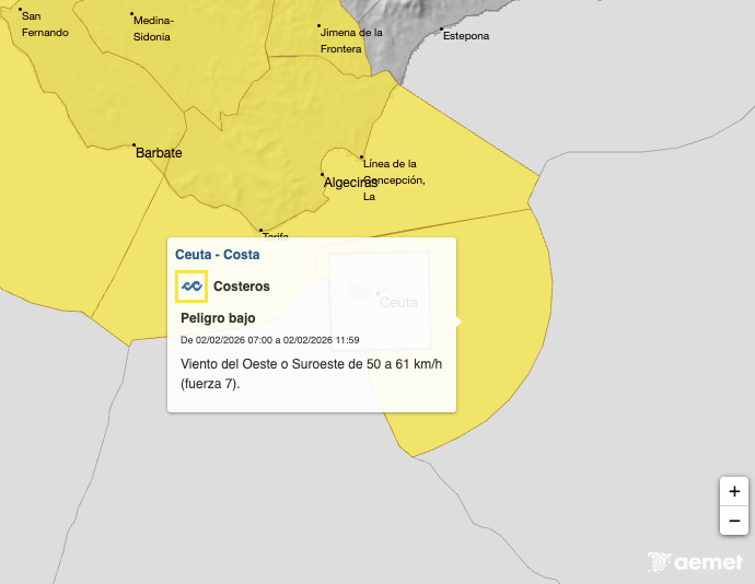 El aviso, incluido en el Boletín de Fenómenos Adversos número 17/78CEU_C_C_AM_TT, advierte de un nuevo episodio de inestabilidad en la costa ceutí, con olas intensas y fuertes rachas de viento que podrían afectar a embarcaciones, paseos marítimos y zonas próximas al mar.