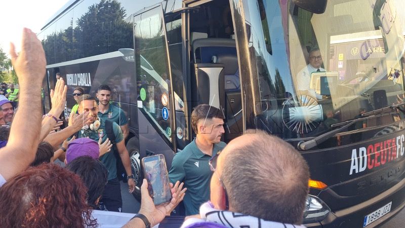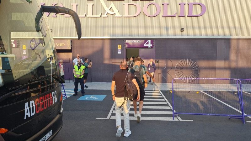 La afición del Ceuta ya va llegando a las instalaciones del estadio José Zorrilla de Valladolid para vivir el debut de los de José Juan Romero en Segunda División. Cerca de 200 aficionados recibieron a la expedición del Ceuta a su llegada a ‘Pucela’ demostrando más que nunca que la afición del Ceuta está con su equipo sin importar el escenario y lo lejos que esté.