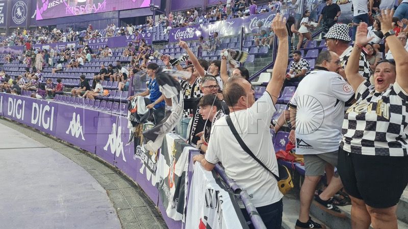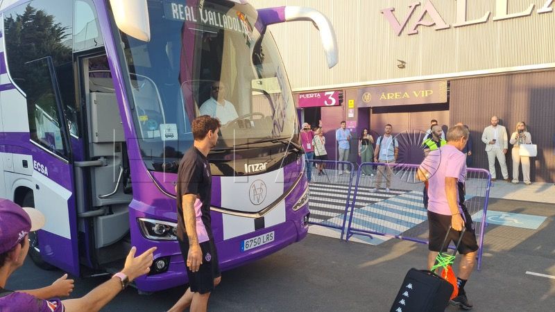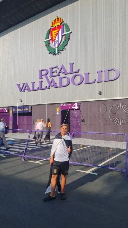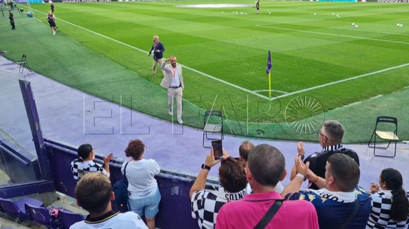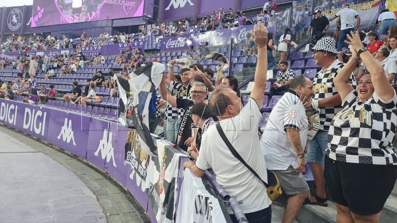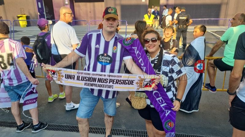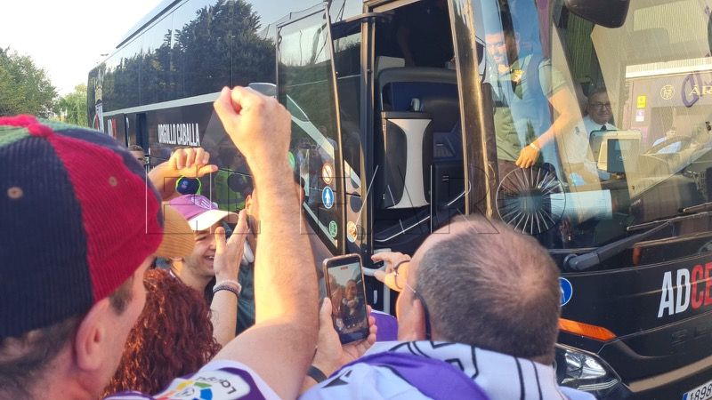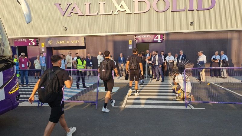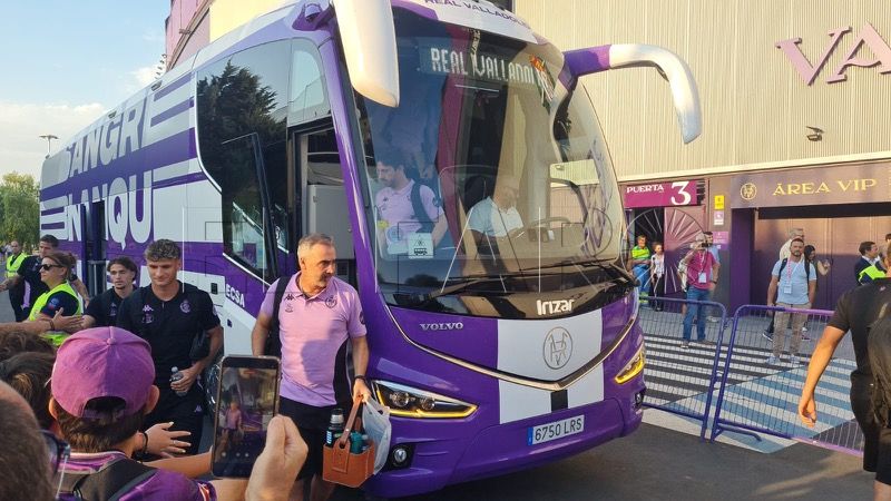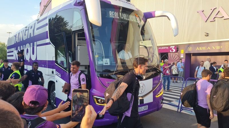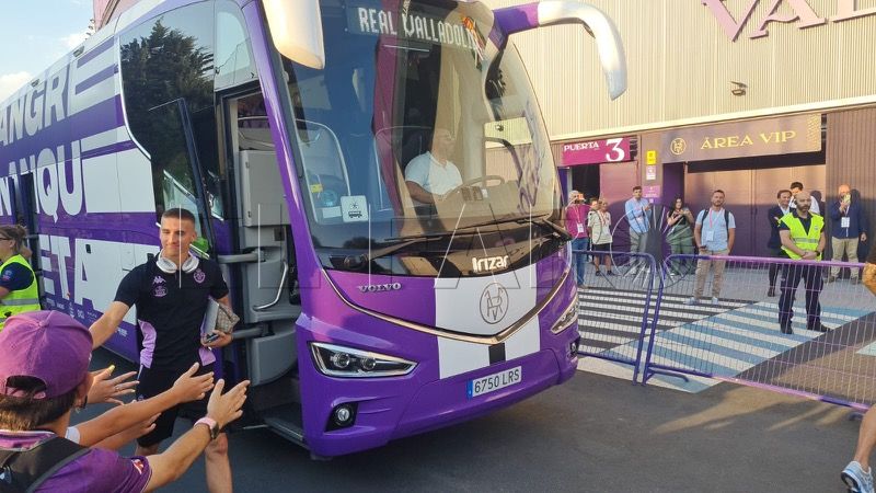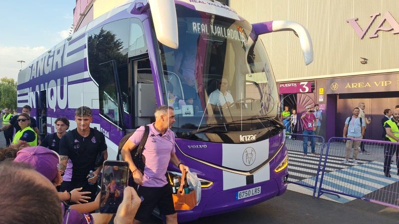 Los aficionados caballas ya están en las inmediaciones del estadio del Valladolid para alentar al conjunto de José Juan Romero en el debut en Segunda División y no quisieron perder la oportunidad de animar al equipo a su entrada al ‘José Zorrilla’