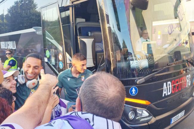 La afición del Ceuta ya va llegando a las instalaciones del estadio José Zorrilla de Valladolid para vivir el debut de los de José Juan Romero en Segunda División. Cerca de 200 aficionados recibieron a la expedición del Ceuta a su llegada a ‘Pucela’ demostrando más que nunca que la afición del Ceuta está con su equipo sin importar el escenario y lo lejos que esté.