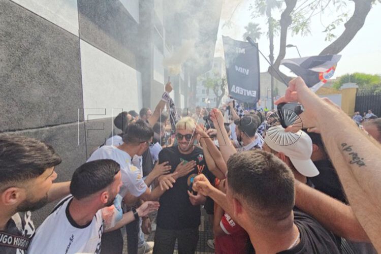 Los hinchas de la AD Ceuta recibieron al equipo en la puerta de vestuarios para despedir a sus jugadores de la Primera RFEF. Una humareda blanca teñía el cielo caballa para recibir a los héroes del acenso y los aficionados le arroparon con un impresionante recibimiento.