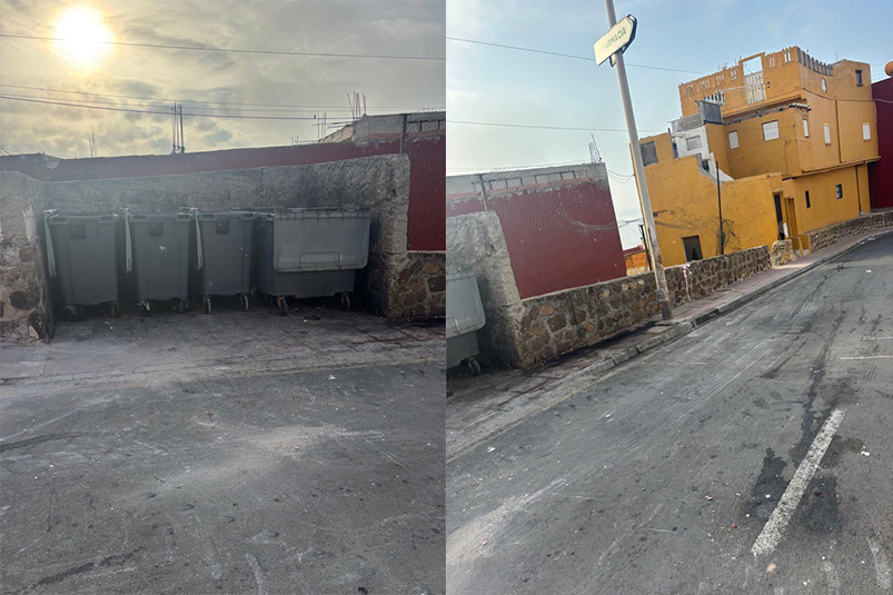 Hoy mismo, cuenta Soltani, “han retirado todo” lo que había. Tal y como se recoge en las fotografías facilitadas antes había todo tipo de restos en la calle, mientras los dos contenedores estaban llenos de basura de todo tipo.