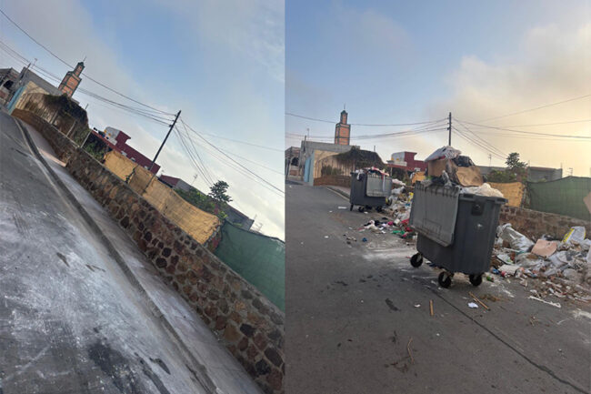 Hoy mismo, cuenta Soltani, “han retirado todo” lo que había. Tal y como se recoge en las fotografías facilitadas antes había todo tipo de restos en la calle, mientras los dos contenedores estaban llenos de basura de todo tipo.