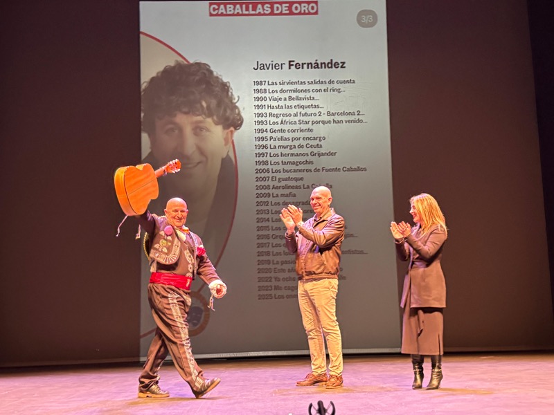 A continuación, subió a las tablas Fernando Martín, recibido también con un aplauso prolongado. Con gesto emocionado, recogió su Caballa de Oro como reconocimiento a casi tres décadas de implicación ininterrumpida.