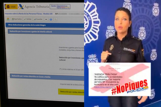 Concretamente, la Policía Nacional recomienda a los contribuyentes que todavía no han hecho la declaración, que aunque el tiempo que quede sea corto, ante cualquier duda que tengan o ante la presencia de información que pueda resultar sospechosa, lo mejor es contrastar directamente con la Agencia Tributaria.