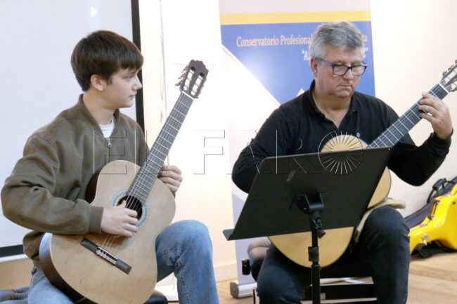 Así, a lo largo de esta tarde, un grupo de alumnos asistiría a un curso práctico de perfeccionamiento musical de la guitarra clásica de la mano de este profesional. Unas clases con las que intentaría, “a cada uno, darle como la receta de lo que necesitan de inmediato para mejorar y al mismo tiempo hacer las clases amenas y también en plan colectivo, para que la clase de uno sirva para los demás y al contrario”, ha expresado García Moreno.