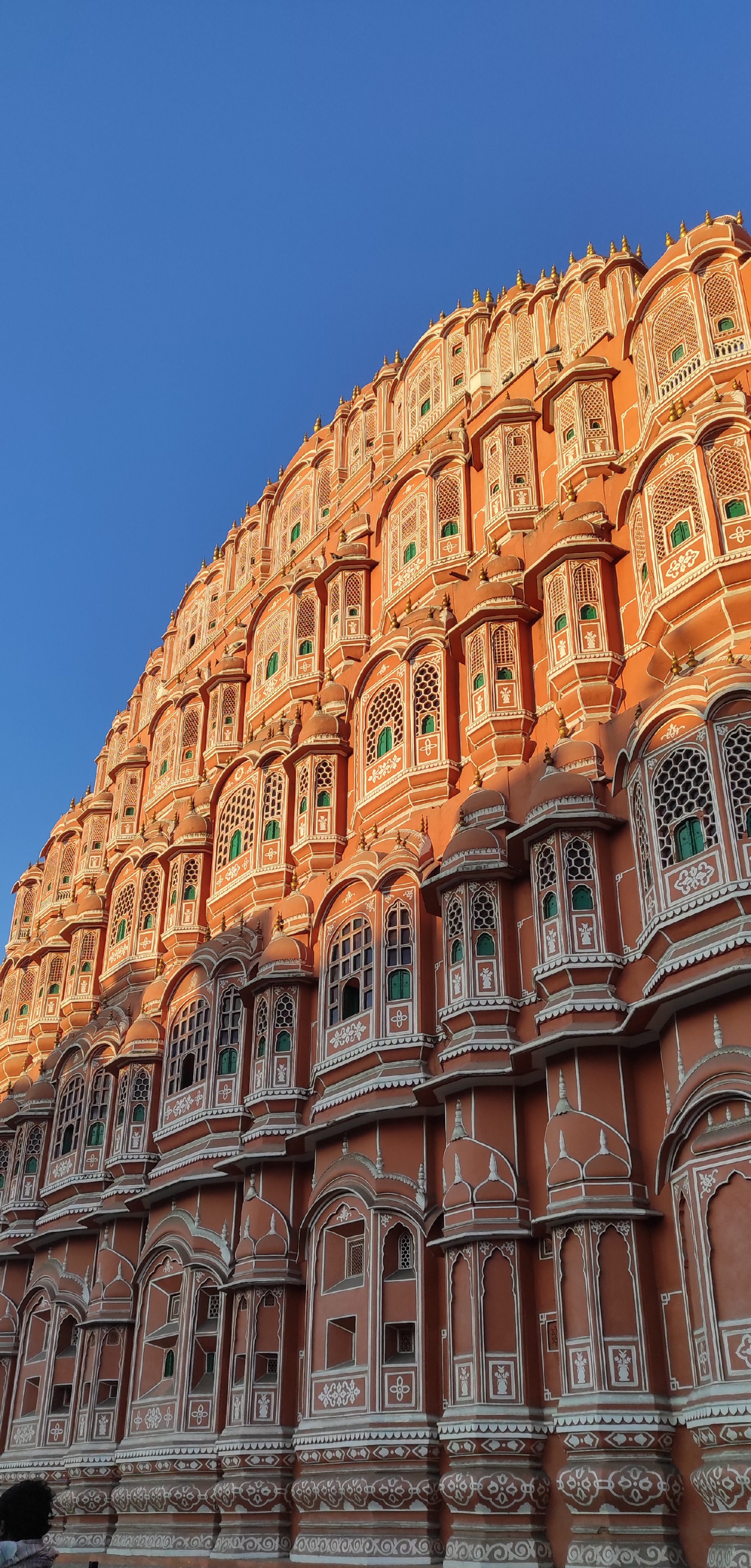 Dirigíos al sur hacia El Hawa Mahal, el palacio de los vientos, en forma de muro con infinidad de ventanas de diferentes formas donde, siglos atrás, las mujeres de la realeza veían el día a día de la ciudad sin ser vistas. Solo la carretera que la atraviesa y el ruido del trafico le quita un poco de encanto al palacio pero aun así merece la pena hacer una parada y disfrutar de su rica arquitectura.