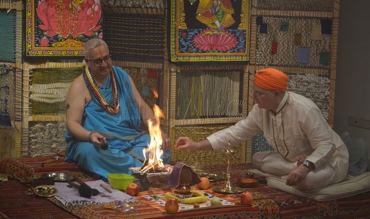 En una ceremonia privada, Krishna Kripa Dasa oficio el Nama-karana Samskara, ceremonia para poner el nombre hindú a Antonio, que se había desplazado expresamente desde Valencia para recibir este importantísimo Samskara o sacramento de la tradición hindú. El Nama-karana sería como el bautizo en el cristianismo, la gran mayoría de los maestros y sampradayas (escuelas tradicionales) consideran que este es el primer paso para entrar formalmente en el Sanatana Dharma (nombre original del hinduismo). El sacerdote hindú comento que a través de los acharyas (maestros) y la tradición de la Sri sampradaya le otorgaba a Antonio, el nombre Ramananda Dasa que significa “aquel que es feliz sirviendo al Señor Rama”. Le hizo entrega de un certificado de Nama-karana que reconoce oficialmente su entrada la gran familia del hinduismo. Como colofón a la ceremonia, se hizo un Homa donde el purohit y Ramananda Dasa hicieron ofrendas al fuego sagrado junto a la alegría de los allí congregados.