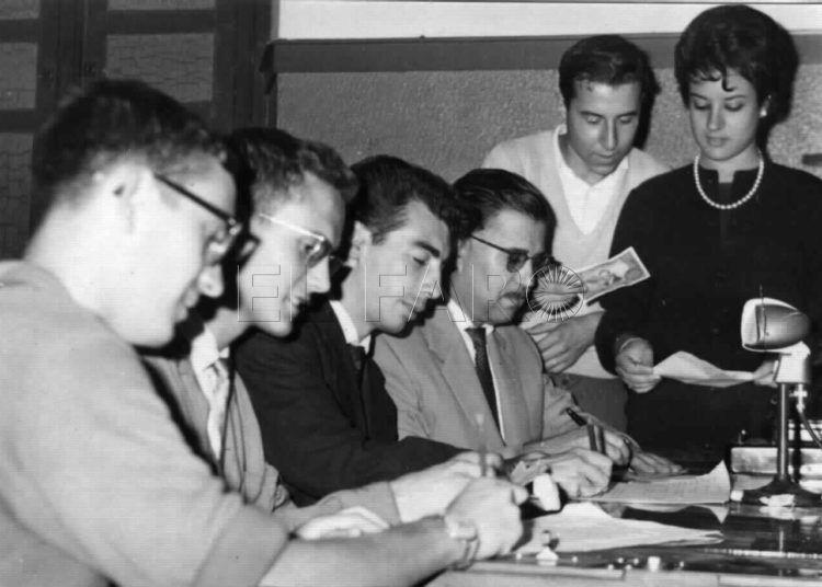 Y en la ‘Operación Barcelona’, en directo, en los estudios de ‘Radio Ceuta’. De izquierda a derecha, José Luís Muñoz, el autor de este artículo, A. Domínguez, José Solera, José Luís Díaz y Ana Mari.
