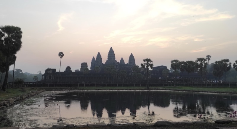 Al día siguiente madrugue para ver amanecer desde Angkor Wat. Llegué cuando clareaba a las puertas del majestuoso enclave. Algunos turistas y nativos del lugar hacían acto de presencia. Me adentré hasta el edificio más alto, casi echo los pulmones por la boca para lograr subir a lo alto. Ya amanecía, el espectáculo era inolvidable. Algunas edificaciones sobresalían a lo lejos de entre los árboles, el Sol clareando las tonalidades verdes de la vegetación que rodeaba Angkor Wat. Pasee despacio por entre todas sus edificios con tonalidades mayoritariamente grises que iban cambiando a medida que la Tierra iba moviéndose alrededor del Sol. Al salir bordee el gran estanque que da la bienvenida y encontré algo que deseaba ver desde hacía años: nenúfares, cientos de ellos adornando sus aguas. Fue un momento mágico que difícilmente podré olvidar.