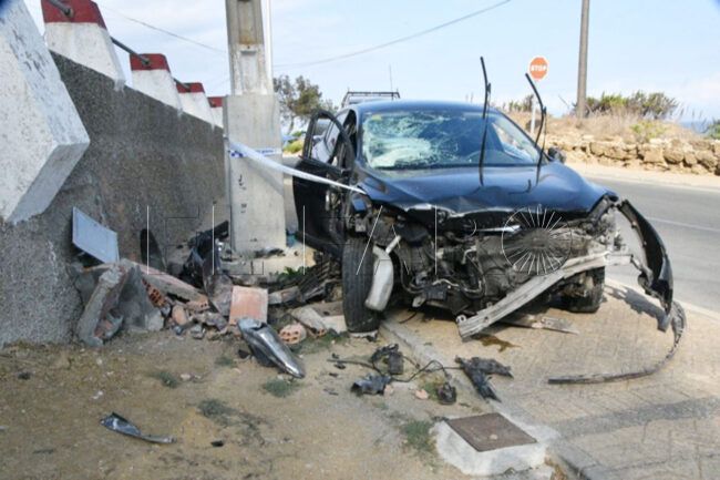 El coche iba en la carretera hacia el cementerio y por causas que se desconocen hasta los momentos ha terminado contra la pared justo en el cruce que hay entre Santa Catalina y la subida hacia la estación depuradora de aguas residuales (EDAR).