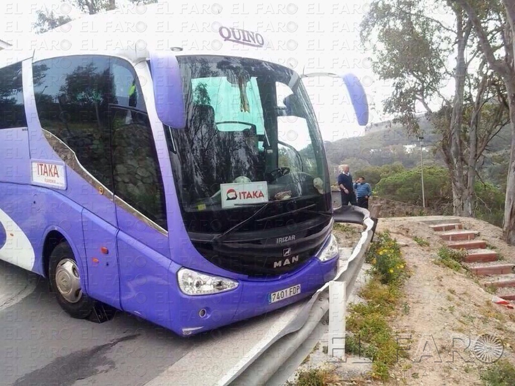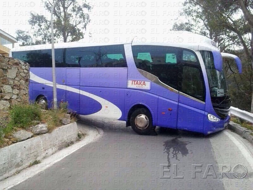 En la mañana de ayer tuvo lugar un aparatoso accidente en la curva de San Antonio después de que este autobús de turistas bajara por una cuesta no permitida lo que provocó que quedara atrapado.