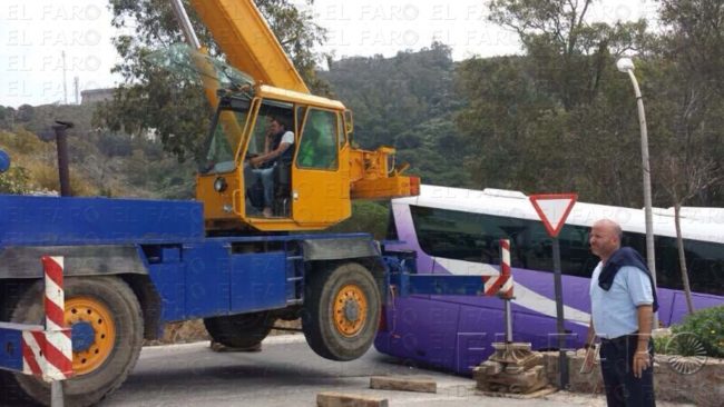 Fue necesaria una grúa, mucha paciencia y el control de las fuerzas de seguridad para sacar el autobús.