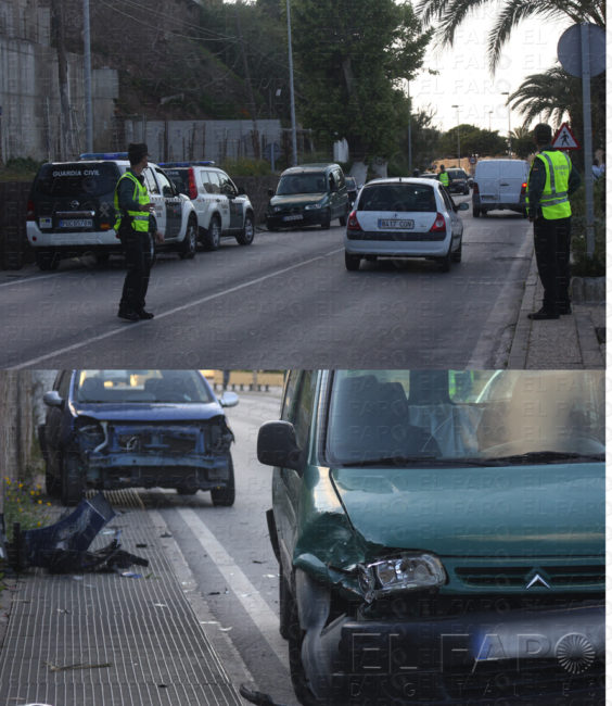 Dos vehículos protagonizaron un accidente de tráfico en la tarde de ayer en la carretera de Benítez, a la altura de la planta desaladora. La Guardia Civil tuvo que intervenir para regular el tráfico, que se vio alterado por el coche, y tramitar la oportuna intervención derivada del siniestro. Uno de los coches implicados resultó bastante dañado en toda su parte frontal. Los agentes recogieron datos, interrogaron a los conductores de ambos vehículos para intentar esclarecer el origen de dicho golpe.