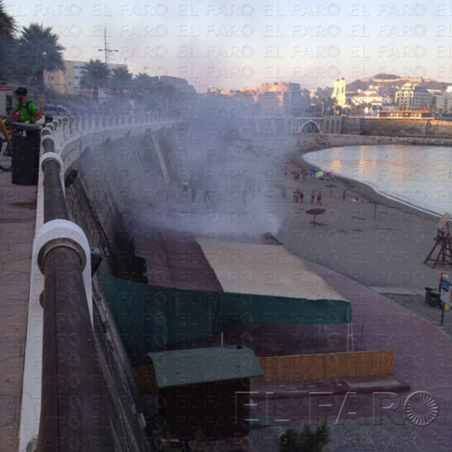 Bomberos, con la colaboración de la Policía Nacional, Policía Local y Guardia Civil, sofocó ayer un incendio que se originó en un chiringuito de la playa del Chorrillo. Mientras llegaban los Bomberos, la UPR de la Policía Nacional lo controló con un extintor y seguidamente los bomberos lo extinguieron. Las labores fueron complicadas debido al lugar en que se produjo el incendio, que se originó en la parte alta de la cocina, que no está expuesta a una llama directa. Por ello se investiga cómo se produjo. La labor de todos estos cuerpos hizo posible el control de la situación y la extinción del fuego, que afectó a la cocina.