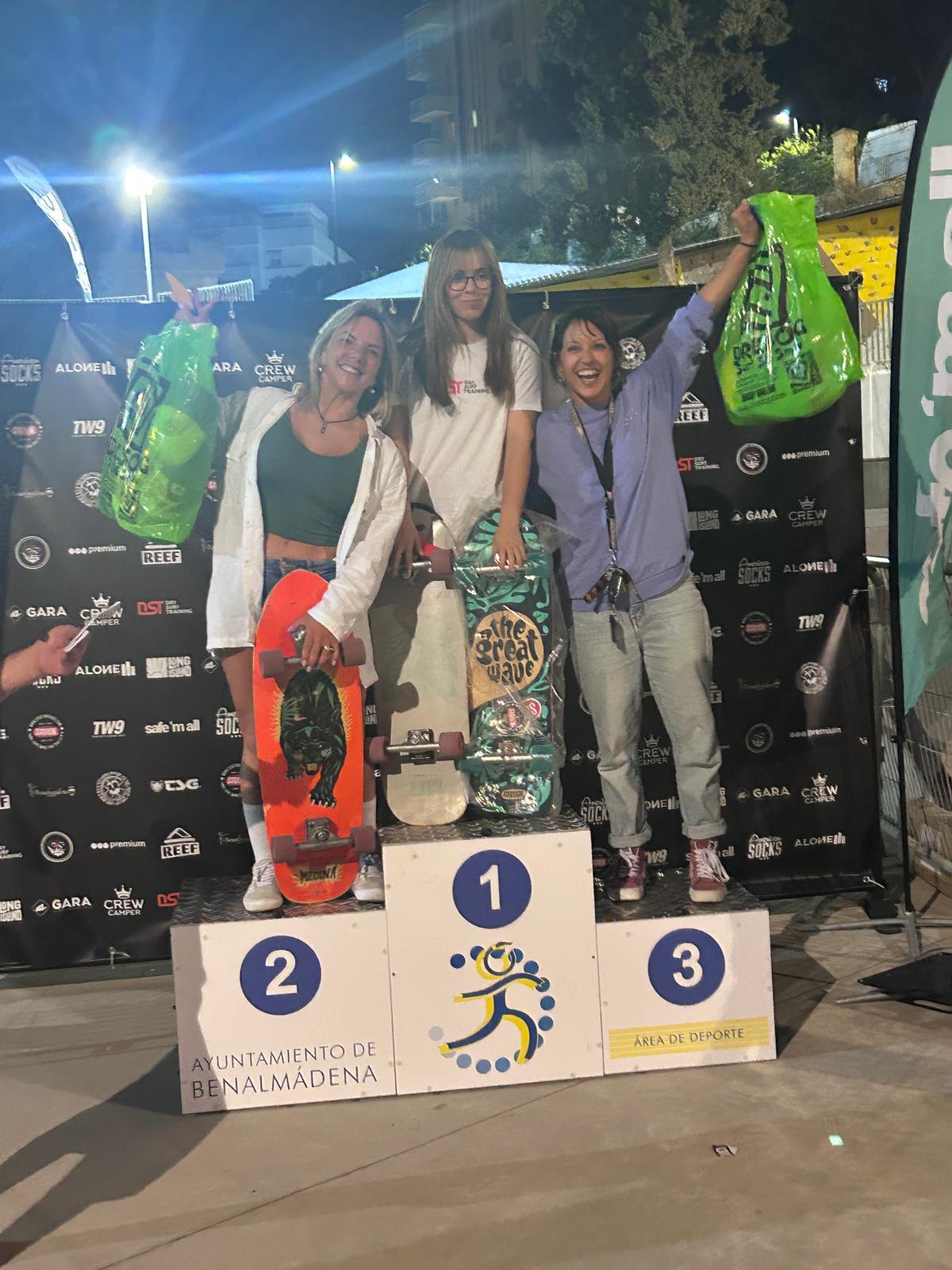 La surfskate ceutí no tenía previsto llegar al podio sino que fue a Benalmádena solo para llevar sus hijos y “fueron ellos los que me animaron a apuntarme y al final por sorpresa quedé en tercer puesto del Open Femenino”.