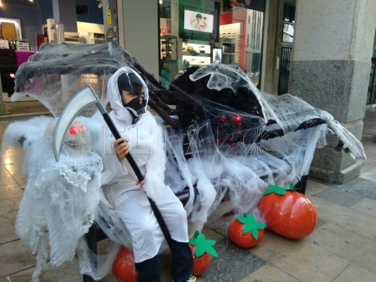 Una gran araña con su tela, una carabela, unas calabazas… y muuuuuchoo miedo. Bueno, más bien muchas ganas de pasarlo bien. Los menores del centro 'La Esperanza' han sacado a la calle este escenario para plantarlo sobre un banco en el Paseo del Revellín, al objeto de atraer a los viandantes para que pudieran fotografiarse. Y lo han conseguido, porque son muchos los ceutíes que han querido posar e inmortalizarse con este trabajo.