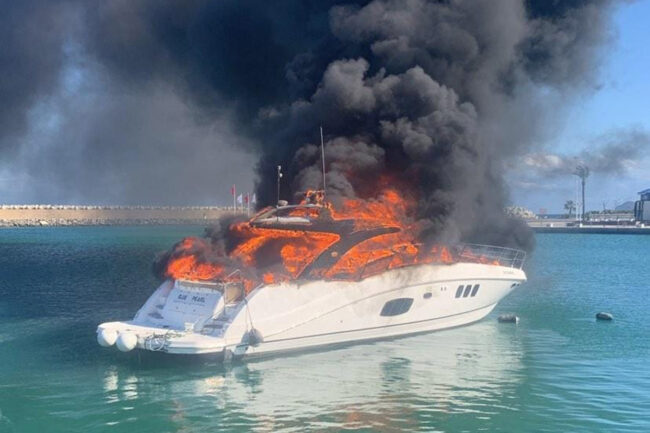 Un yate de lujo en llamas. Esa ha sido la imagen que ha podido verse este sábado en el puerto de Marina Smir (Marruecos). Se está investigando la causa de este siniestro que ha llamado la atención a los presentes y ha movilizado a las autoridades locales.