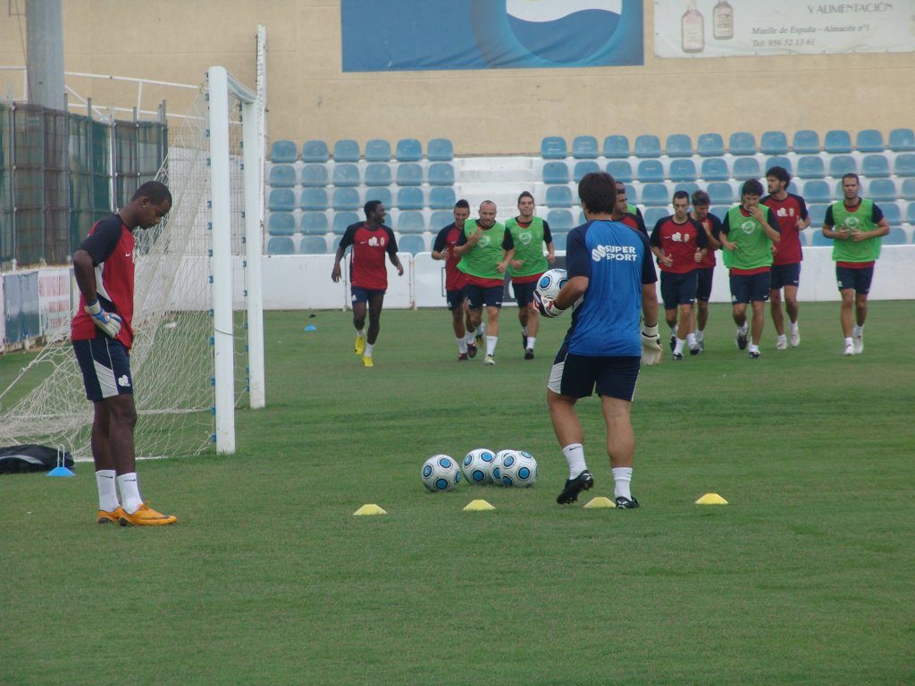 Con el mismo escenario de fondo, los jugadores se ejercitaron en una sesión en donde el balón fue el protagonista, con ejercicios físico-técnicos. La novedad fue la llegada de Raoul Loe y Modeste, así como la del guardameta de Cabo Verde, Fock.