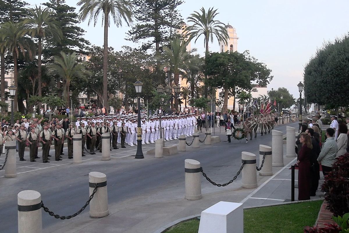 El acto ha sido presidido por el comandante general de Ceuta, Luis Fernández Herrero; acompañado de la presidenta accidental de la ciudad, Pilar Orozco Valverde; de la delegada del gobierno, Cristina Pérez Valero; y el vicealmirante jefe del cuartel general marítimo de alta disponibilidad.