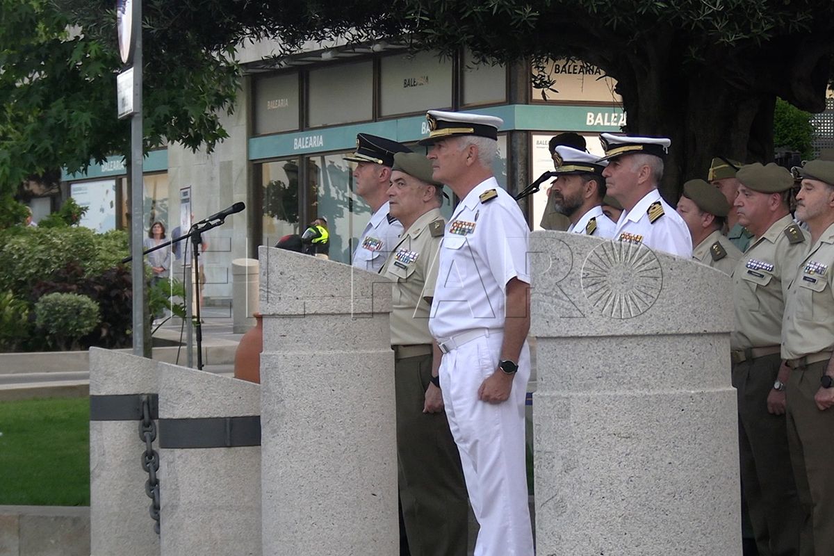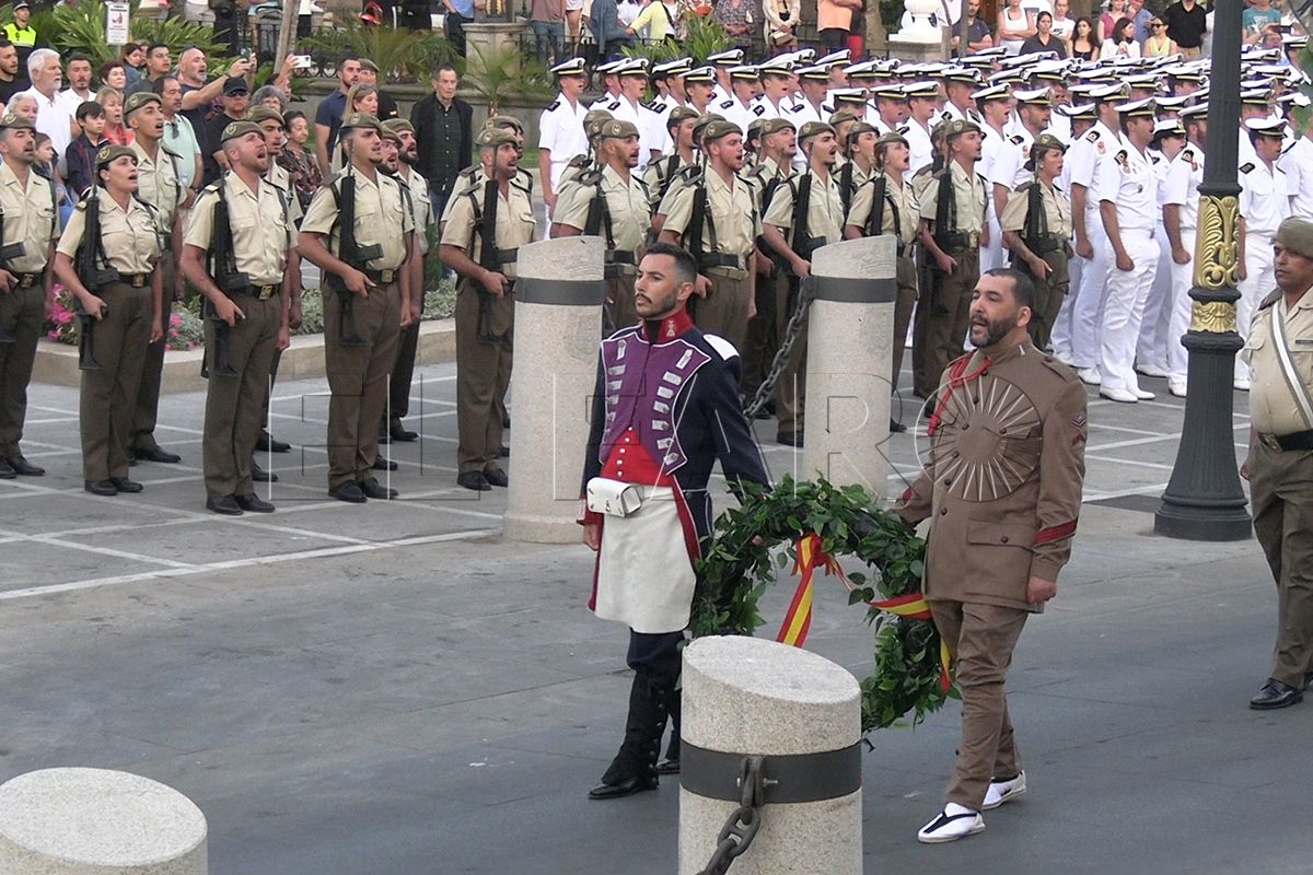 La corona de laurel ha sido depositada en el monumento a los que dieron su vida por España por el comandante naval de Ceuta y el jefe del Regimiento de Ingenieros nº 7.