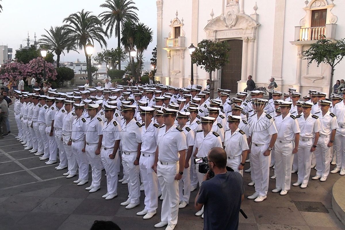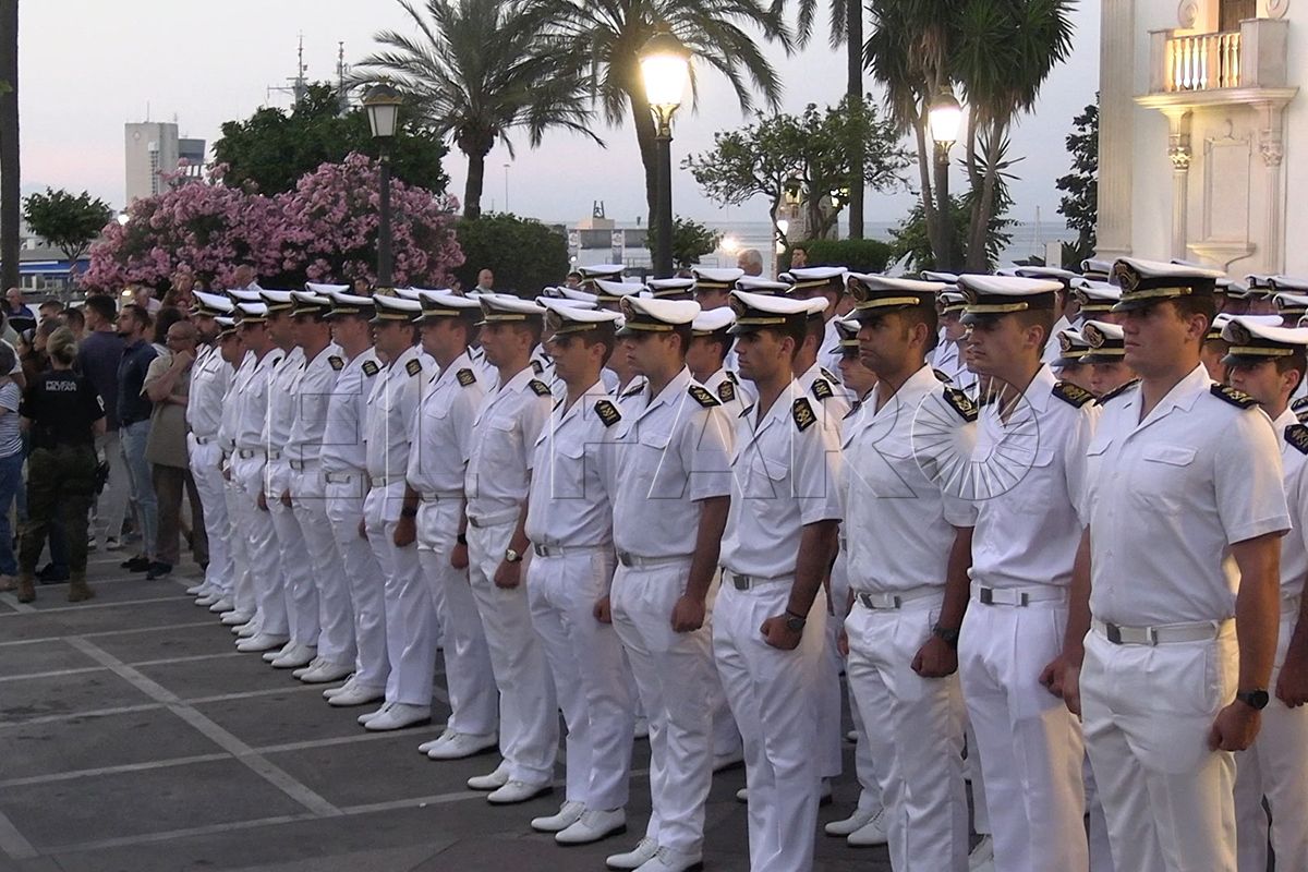 Este arriado tan simbólico ha contado también con la presencia de los profesores de tripulación, damas y caballeros alumnos de diferentes cursos del plan de carrera de la escuela naval militar, que han llegado embarcados en el buque de asalto anfibio ‘Castilla’, la fragata ‘Santa María’ y el buque escuela de cooperación pesquera ‘Intermares’; realizando la estrecha colaboración entre los distintos componentes de las Fuerzas Armadas.