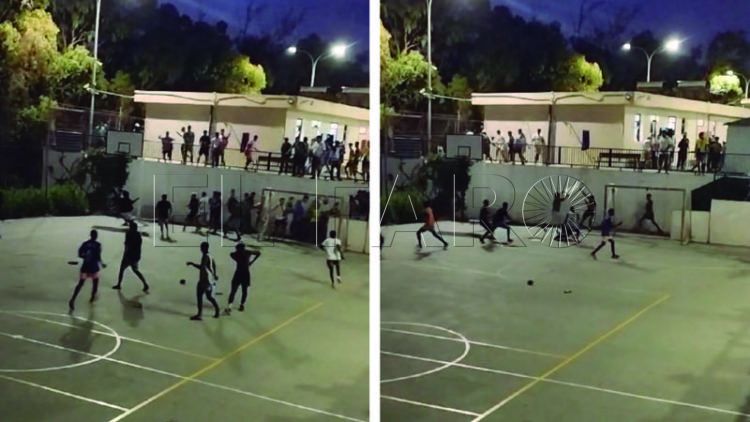 Dentro de la pista deportiva, la misma que suele ser usada para la práctica de torneos y partidos. Allí es donde se ha originado la gran pelea entre residentes del CETI de Ceuta que ha llevado a un gran despliegue policial en la noche de este martes a miércoles.