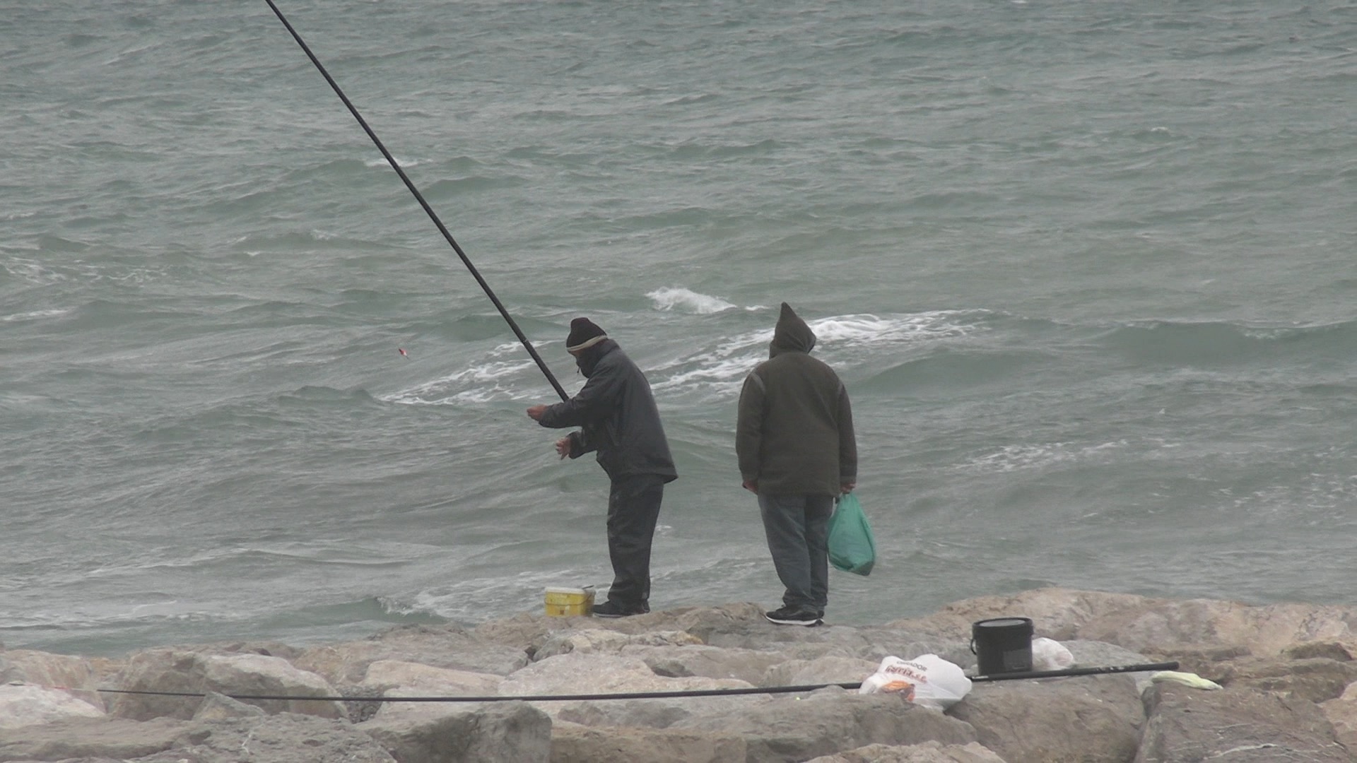 Hay quienes aprovechan estos días para la práctica de su afición, la pesca. Mientras la borrasca Therese hace de las suyas, hay quienes no se detienen en mantener viva esa afición.