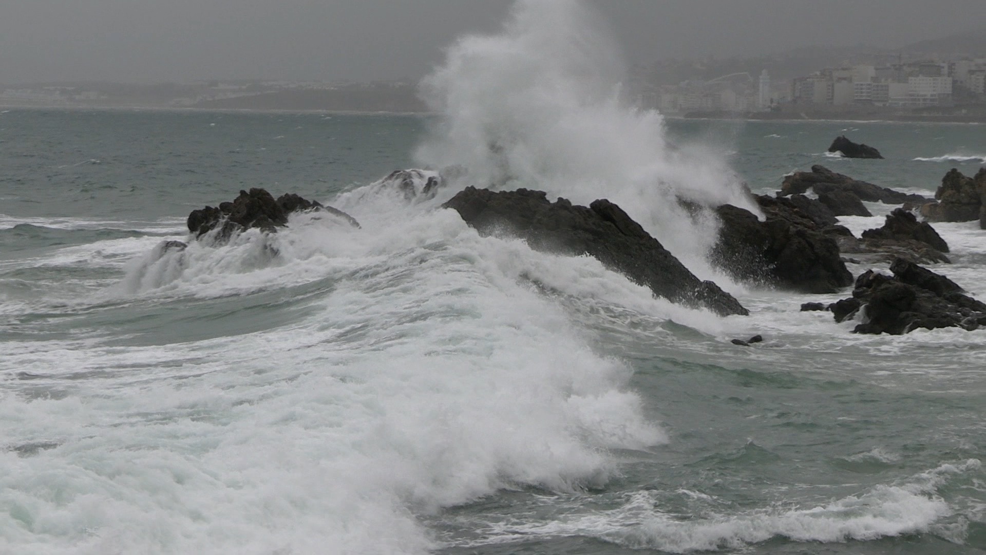 El mar ofrece imágenes de auténtica furia, desde olas que rompen con fuerza contra las rocas a imágenes que apuntan a una situación adversa, bastante complicada.