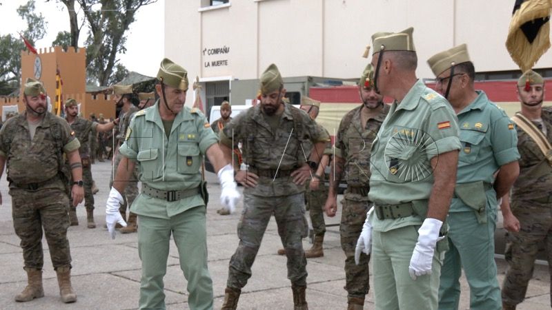 Se trata de un proceso bien dispuesto en el que se recrea al completo la secuencia del acto: la disposición sobre el terreno, las salidas y entradas de posiciones, la colocación de guiones, el homenaje a los caídos, la interpretación del ‘Novio de la Muerte’, el himno de la Legión y, finalmente, el desfile.
