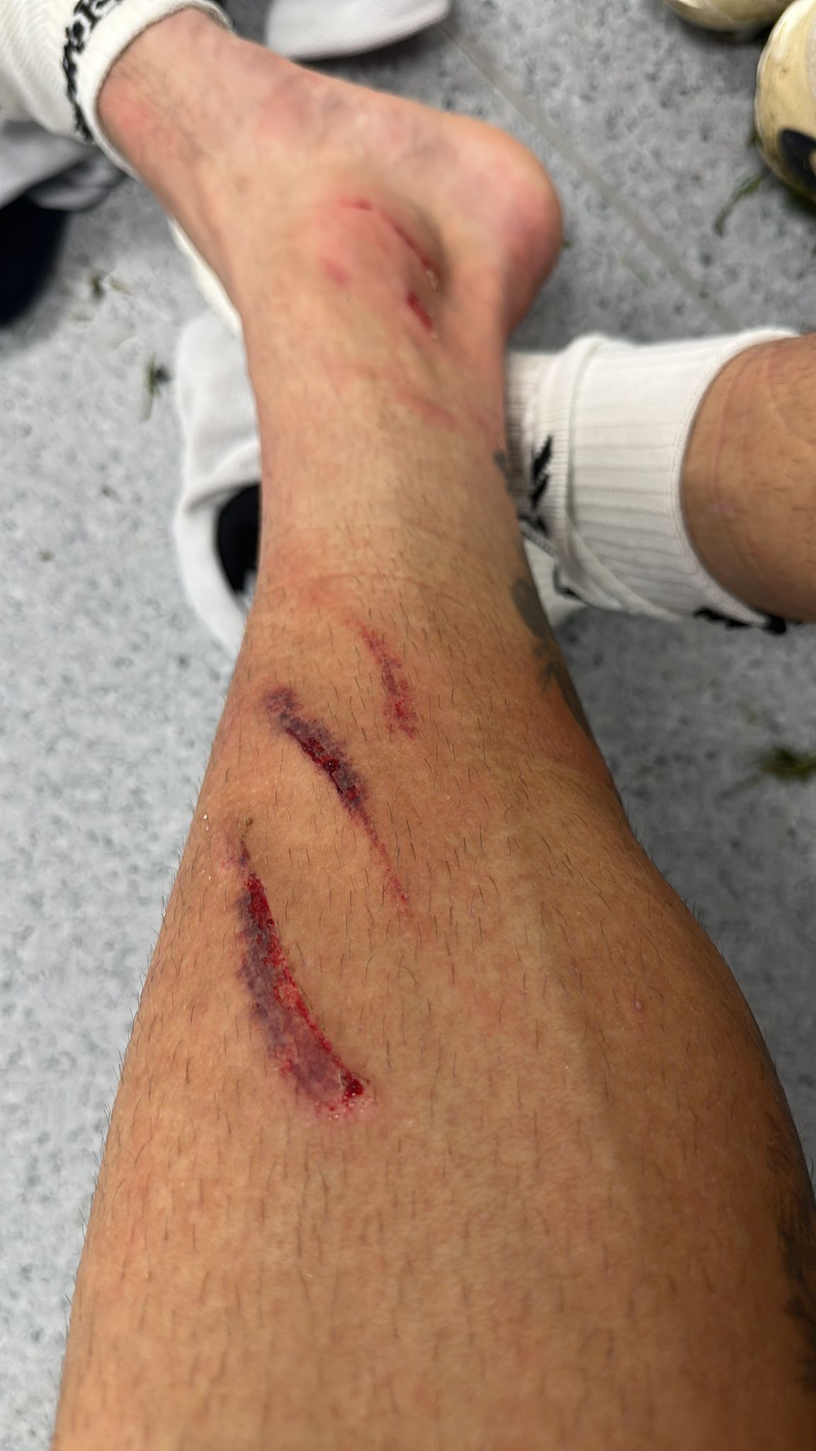 Así ha quedado la pierna de Cristian Rodríguez tras la entrada de Villares en el descuento del partido entre el Deportivo y el Ceuta con victoria para los gallegos por 2-1 con los tantos de Yeremay y Stoichkov.