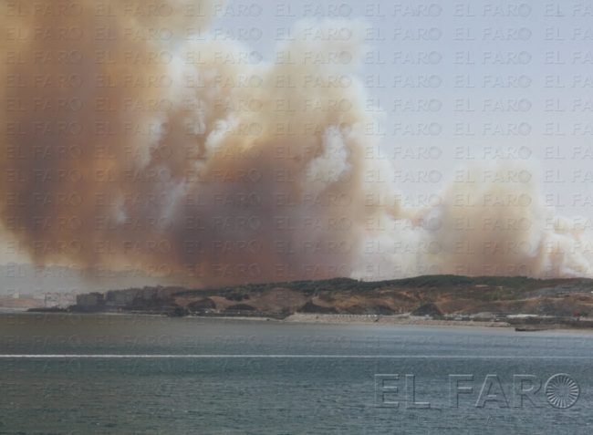 Pasadas las tres y media de la tarde se producía, en Marruecos, un aparatoso incendio de basura que terminaba dejando imágenes como ésta, apreciadas así desde Ceuta.La columna de humo se veía claramente incluso desde el centro, produciéndose cuantiosas llamadas al 112 de ciudadanos que se pensaban que el incendio podía estar produciéndose en la ciudad.