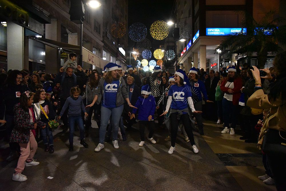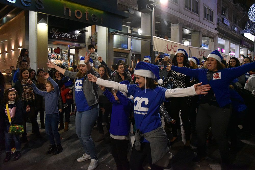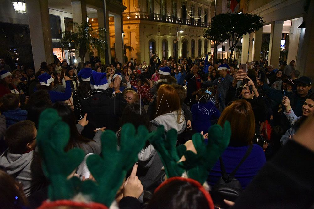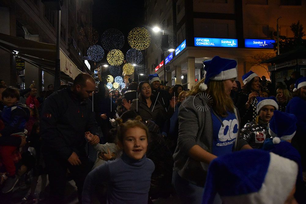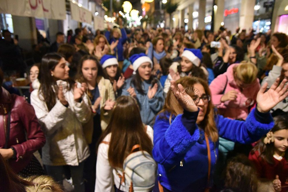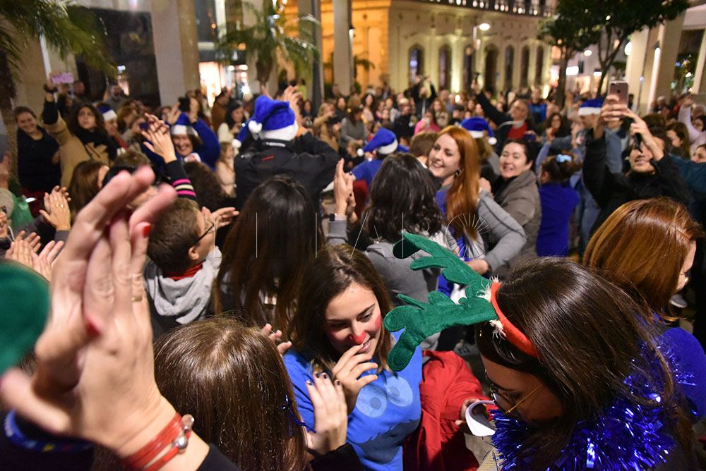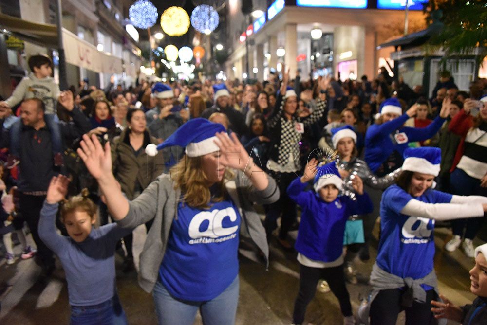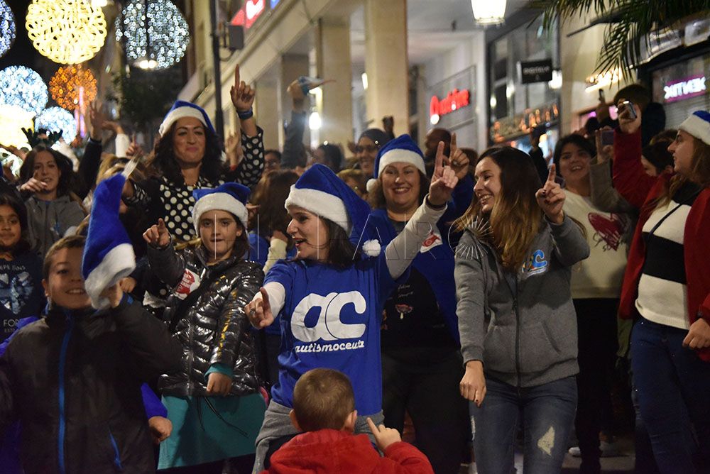 La Asociación de Autismo ha querido celebrar la llegada de la Navidad con un original flashmob en el Paseo del Revellín. Pasadas las 20.00 horas y provocando la sorpresa entre los transeúntes, integrantes de la asociación, quien portaban alguna prenda azul, se han representado una coreografía aprovechando el villancico que cada tarde suena en sintonía con el alumbrado navideño.