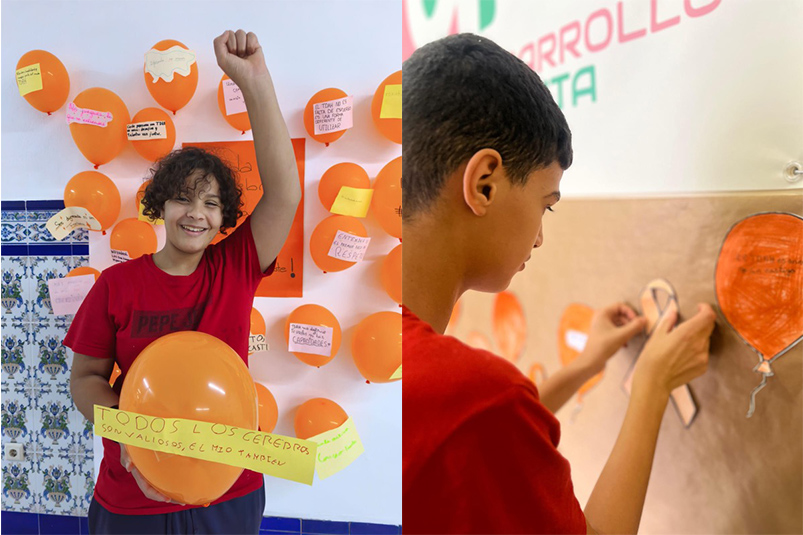 Ya por la tarde, la asociación por el Desarrollo Profesional en Ceuta celebró diferentes actividades en sus locales de Hadú y el Príncipe con los niños de sendas barriadas, como la realización de un mural en el que los pequeños fueron pegando “frases poderosas” en globos de color naranja en apoyo a los niños que tienen TDAH. También colorearon lazos color naranja y globos y fueron pegándolos en la pared.