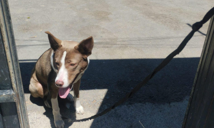 La triste estampa que se encontraron fue la de este animal triste, atado con una correa a la puerta de estas instalaciones. En su rostro se reflejaba la incertidumbre al no entender por qué se había quedado sin hogar de buenas a primeras.